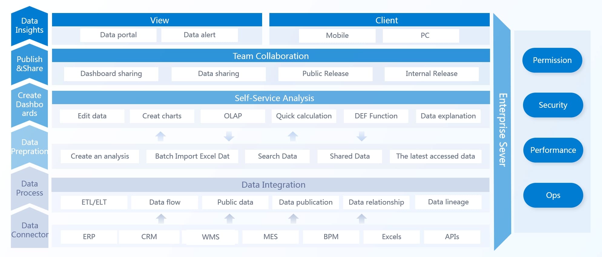 Integration capabilities are essential for any business intelligence tool. Open-source BI platforms should connect seamlessly with your existing data sources—whether they’re SQL databases, big-data systems, cloud storage, or flat files—to consolidate multiple streams into a single analytics environment. FineBI delivers on this promise with out-of-the-box connectors to over 30 SQL engines (including MySQL, PostgreSQL, and SQL Server), big-data platforms (Hadoop, Spark, Hive), multi-dimensional databases, as well as Excel and CSV files. Its intelligent data catalog automatically profiles and indexes these sources, so users can discover and blend datasets without writing a single line of code.