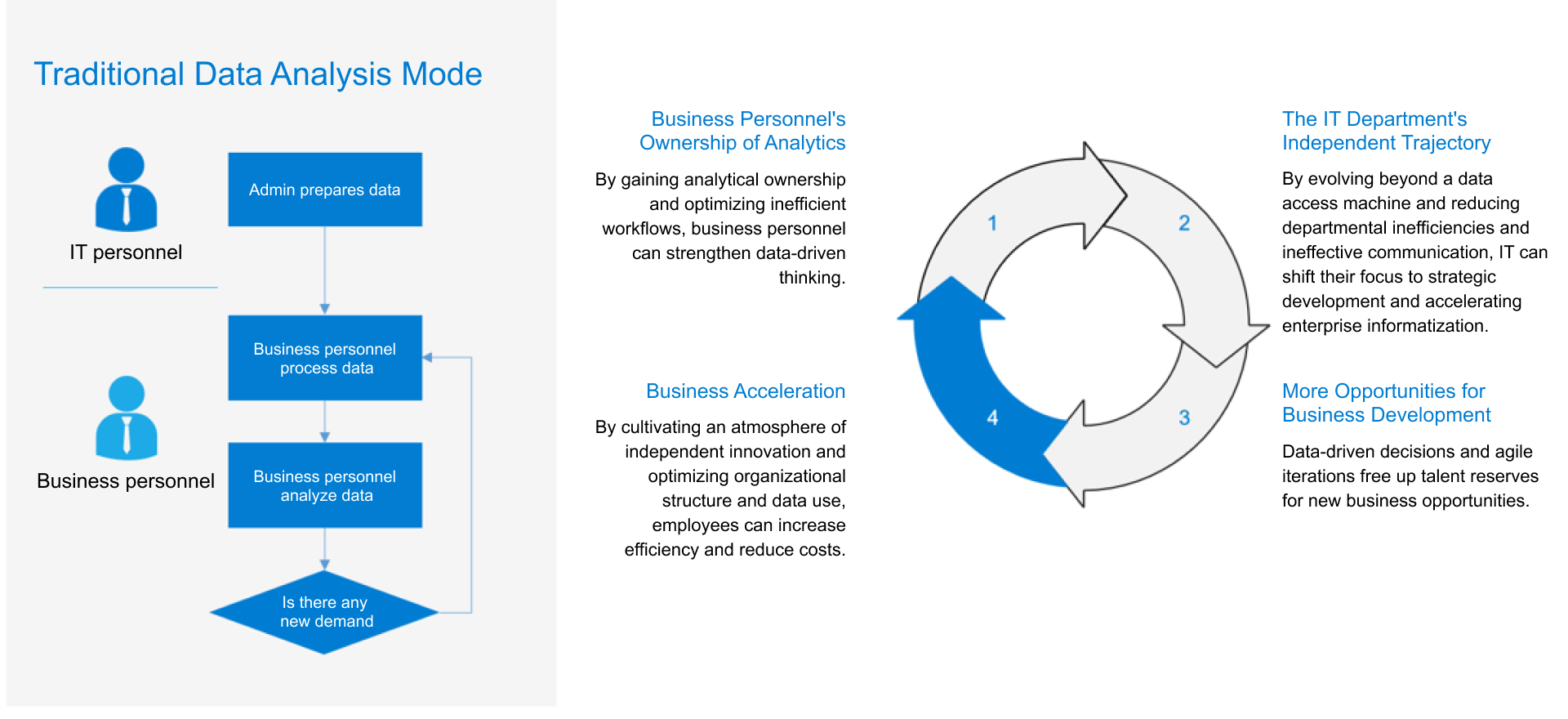 Pengguna non-teknis harus bisa membuat analisis sederhana tanpa selalu bergantung pada TI atau analis data.