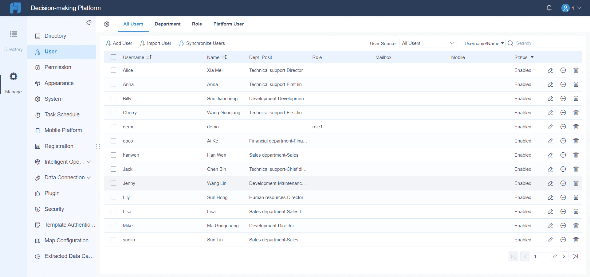 협업 작업에서 데이터가 일치하지 않는 경우가 많습니다. 여러 사람이 동일한 테이블을 조작하면 데이터를 변경하거나 오용하여 최종적으로 모두의 데이터가 일치하지 않게 됩니다. FineReport는 온라인 배포를 채택하여 데이터를 데이터베이스에 일괄적으로 저장합니다. 따라서 각 데이터 수정은 일관되게 이루어집니다.