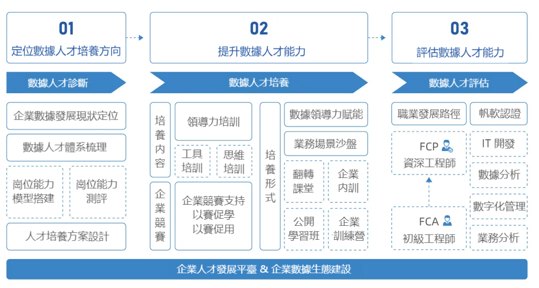 但回到現實,對於大多數企業來說,可能這些設計過於耗時繁雜,且需要投入專門的人力去做,價效比不高。針對這類企業,建議可以藉助乙方公司的力量,藉助其專業的培養體系,培養屬於自己企業的數據人才。帆軟已經為近400家企業提供了數據人才服務,幫助企業培養了10000+數據人才,覆蓋了金融、地產、零售、製造、醫藥等行業。