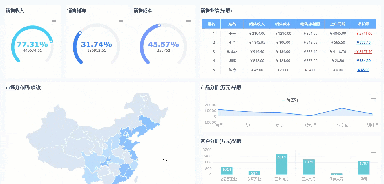 一套好的動態報表工具,至少應支援常見互動功能,例如參數過濾、鑽取、聯動、條件控制、圖表整合與多來源資料呈現。